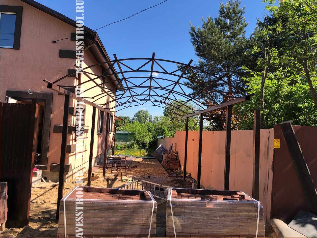 За день на даче изготовили арочный навес 5 на 7 с покрытием поликарбоната. Привезли уже готовые крашенные фермы и весь остальной материал. Все за собой убрали и увезли мусор. Молодцы!
